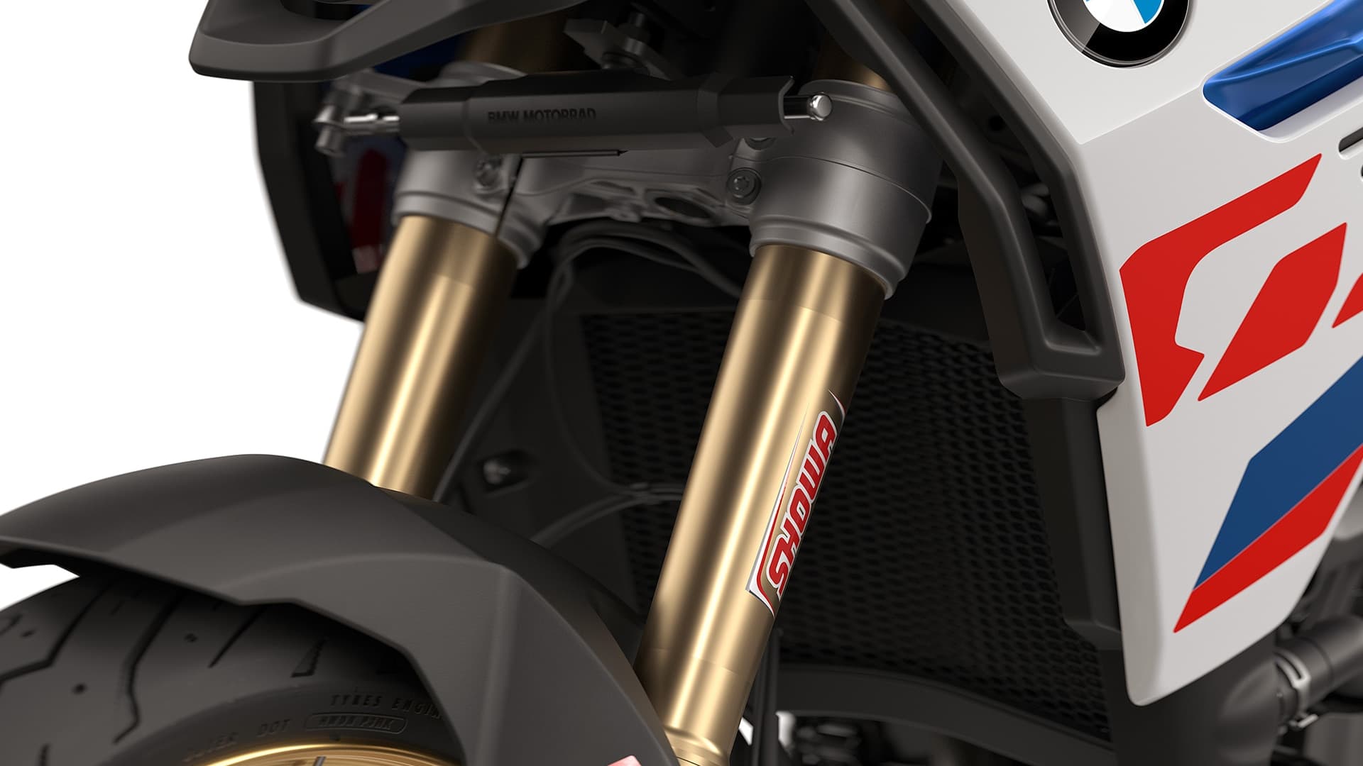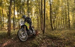 Con el ajuste correcto, lista para desplazarse por cualquier terreno: gracias a la suspensión deportiva con horquilla Showa de 45 mm totalmente ajustable incluida en el paquete opcional Enduro Pro.