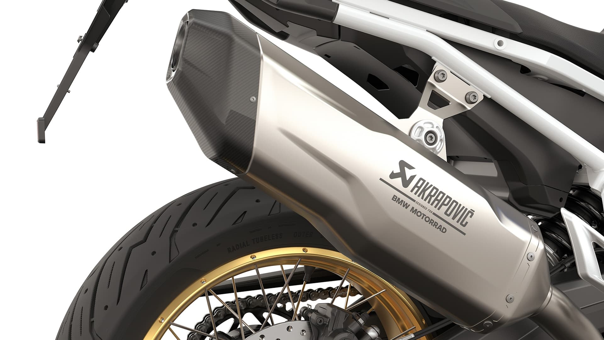 La F 900 GS emite un sonido limpio. Entre otras cosas, esto se debe al silenciador final deportivo de titanio Akrapovič incorporado de serie.
